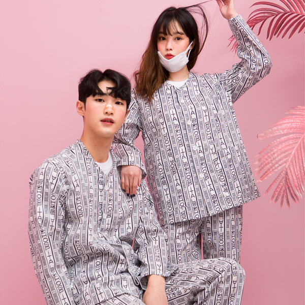 환자복 블루 긴팔 상하