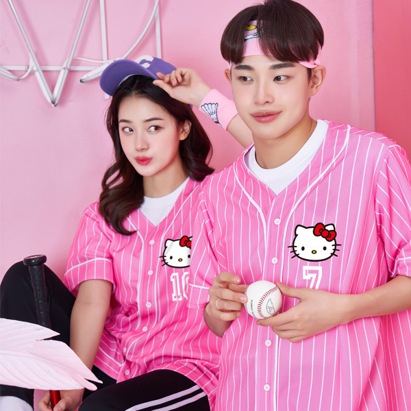 안녕! 냥이 베이스볼 져지 상의 핑크